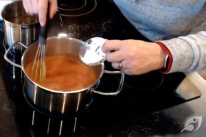 - Slowly add the baking soda, whisking in a little to a time, constantly stirring as you do it.*