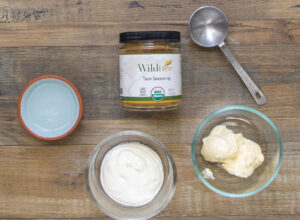This sauce couldn’t be any easier. Combine two tablespoons mayonnaise with two tablespoons sour cream (or Greek yogurt as a healthier alternative), add one tablespoon water, and one tablespoon Wildtree Taco Seasoning, whisk everything together, and you’re all set.
