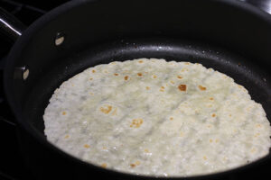 We like warming our gluten-free corn or flour tortillas in a skillet. Begin by drizzling a teaspoon of grapeseed oil in the bottom of the skillet. Spread the oil to coat the bottom of the pan. Add the tortilla one at a time, warming on each side for 2-3 minutes over medium heat or until slightly browned. Then place them in a toaster oven or microwave oven until needed to keep them warm and pliable.